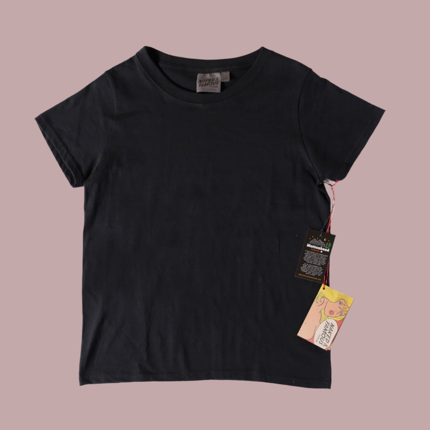 the perfect tee! not too long and not too cropped with a round neck. The sleeves are a bit shorter than a normal tee which I love as it's a more flattering look.