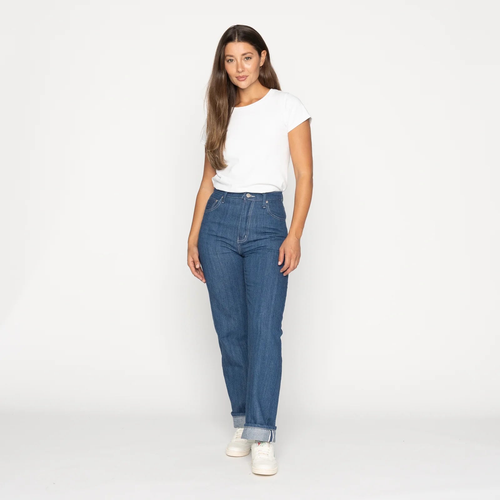 The True Girl is a high rise straight fit, fitted around the hips, fuller in the thigh that falls to a wide leg opening.