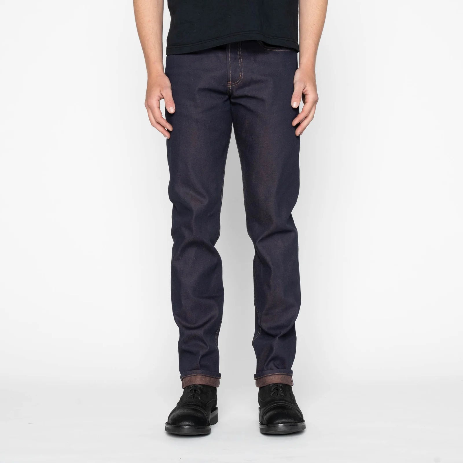 The Weird Guy is a regular tapered fit; medium rise, standard thigh and slight taper from the knee to hem