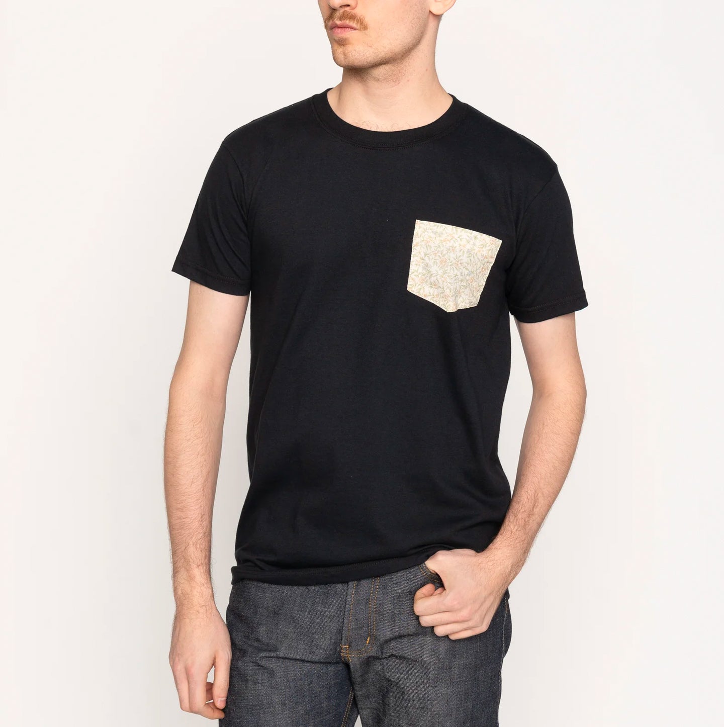 Pocket Tee - Black - Heavy Vintage Flannel - Pale Grey