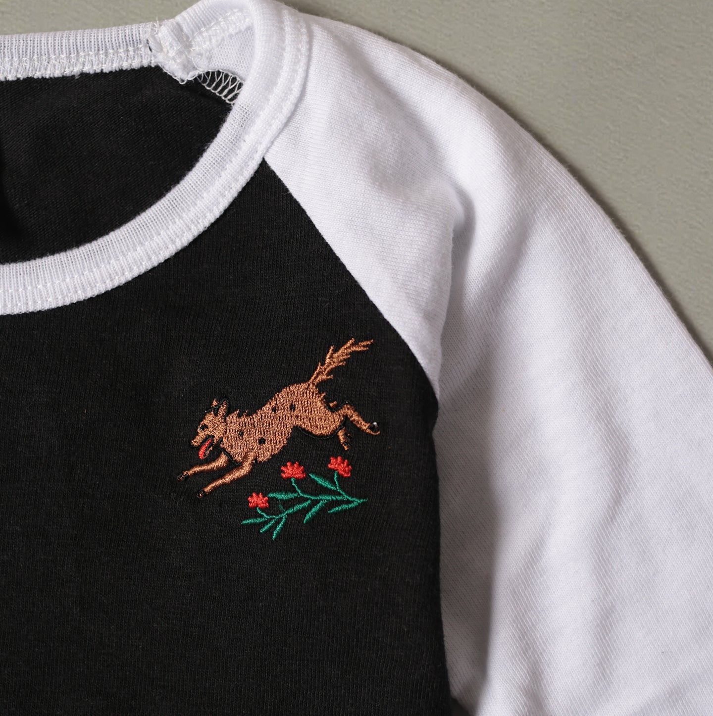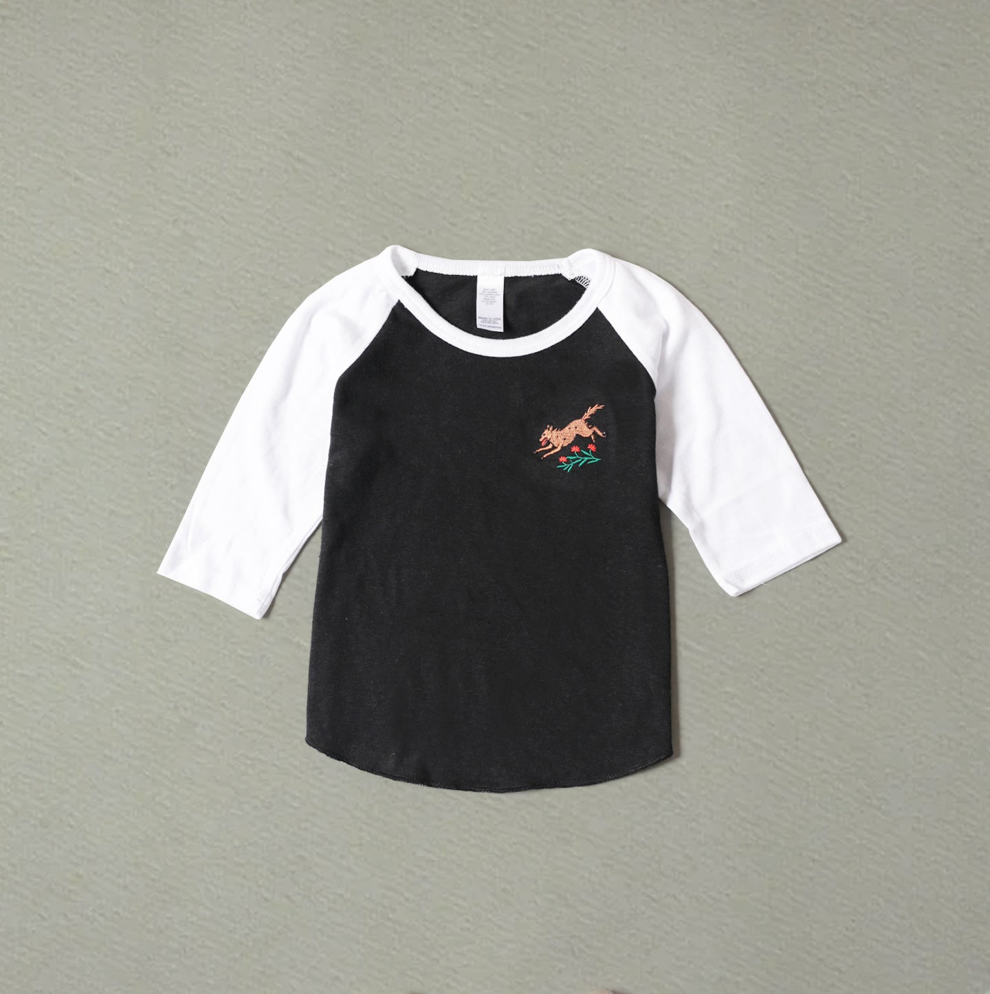 Baby/Kids Baseball Tee - Black/White - Wild Wolf Embroidery