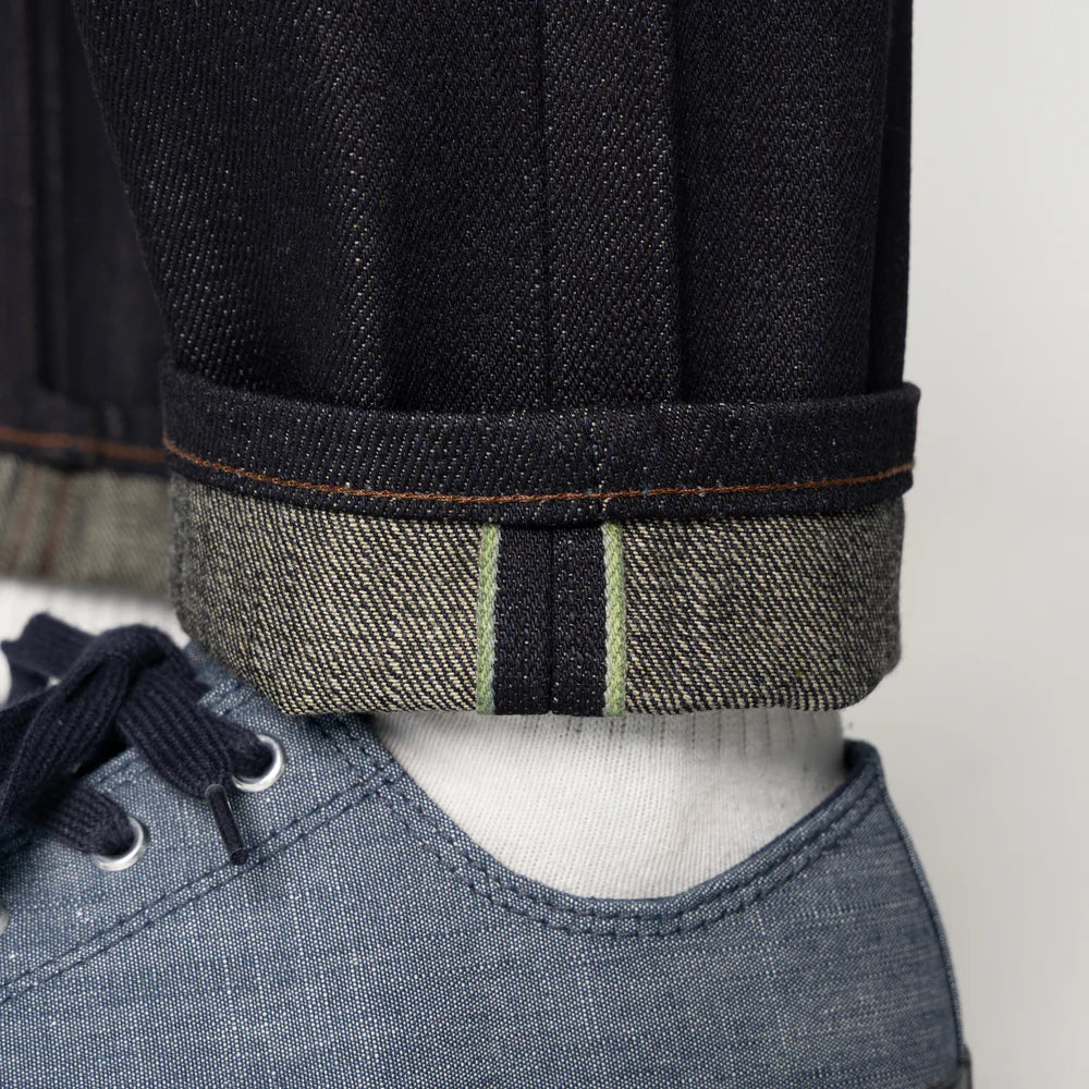 The Matcha Selvedge is a 15oz Japanese Selvedge Denim, woven on vintage shuttle looms. This unique denim adopts the distinctive hue of traditional Japanese matcha green, using it to dye the interior weft, infusing the denim with an earthy green undertone. As the denim gracefully fades with each wear, it subtly reveals its green character, adding a unique layer of visual interest. This denim is rigid and slubby, imbued with texture that will become more prominent and interesting with fading. A feature to note is the gradient green line selvedge ID, adding a cohesive detail to this unique denim design. Made from 100% cotton, the jeans feature a luxurious green pull up leather patch, and antique copper hardware. Each pair is meticulously cut, sewn, and crafted with attention to detail in Canada.